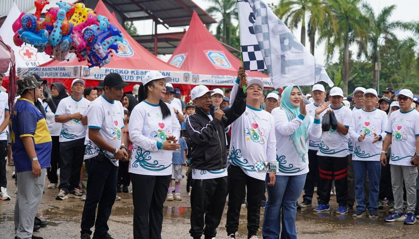 Bupati Murung Raya, Heriyus, menyampaikan apa yang diupayakan pemerintah pada kegiatan Jalan Sehat yang digelar di Alun-alun Jorih Jerah, Minggu (9/11/2025). Acara ini menjadi wahana untuk mengajak masyarakat lebih peduli terhadap kesehatan.