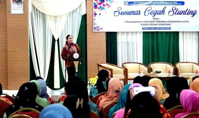 KaltengPress.com, Puruk Cahu – Pemerintah Kabupaten Murung Raya (Pemkab Mura) menunjukkan komitmen serius dalam upaya pencegahan stunting melalui penguatan kerja sama lintas sektor. Melalui Dinas Pemberdayaan Perempuan dan Perlindungan Anak, Pengendalian Penduduk dan Keluarga Berencana (DP3A DALDUKKB), Pemkab Mura menggelar seminar vital bertema “Pengasuhan 1000 HPK Kunci Cegah Stunting” di Aula Rumah Jabatan Bupati pada hari Senin, 8 September 2025.